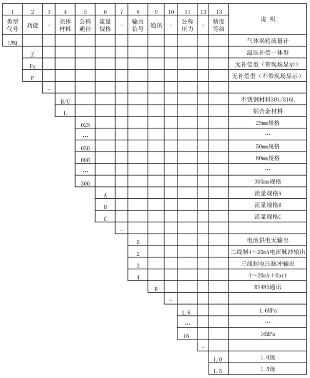 ▮氣體渦輪流量計產品型號標記