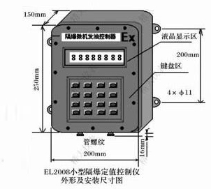 EL-2008隔爆批量控制器是一種新型的智能化隔爆定量控制儀表,它采用高性能微處理器,是一種真正的單片機系統(tǒng)。它采用背光式液晶顯示器顯示,不受光線的影響,結(jié)構(gòu)簡單,可靠性高,可直接安裝于防爆操作現(xiàn)場、油罐車等需要現(xiàn)場防爆定量計量的場合。與各種脈沖輸出流量計配套可對流量進(jìn)行質(zhì)量或體積量的定量灌裝、計量和控制。該儀表可通過面板置入?yún)?shù),實施控制,具有斷電保護(hù)功能,是現(xiàn)代控制的理想單元儀 表。