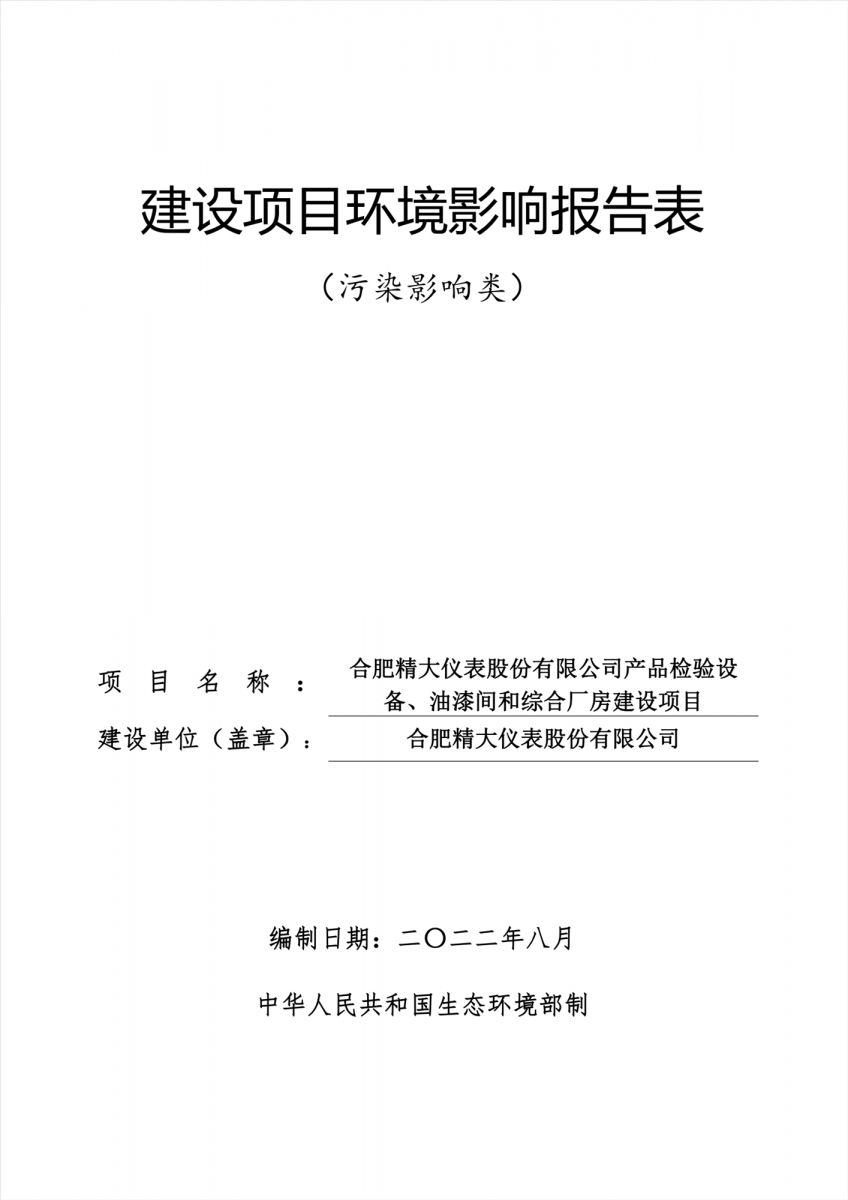 合肥精大儀表股份有限公司產(chǎn)品檢驗(yàn)設(shè)備、油漆間和綜合廠房建設(shè)項(xiàng)目環(huán)境影響評(píng)價(jià)報(bào)告表公示