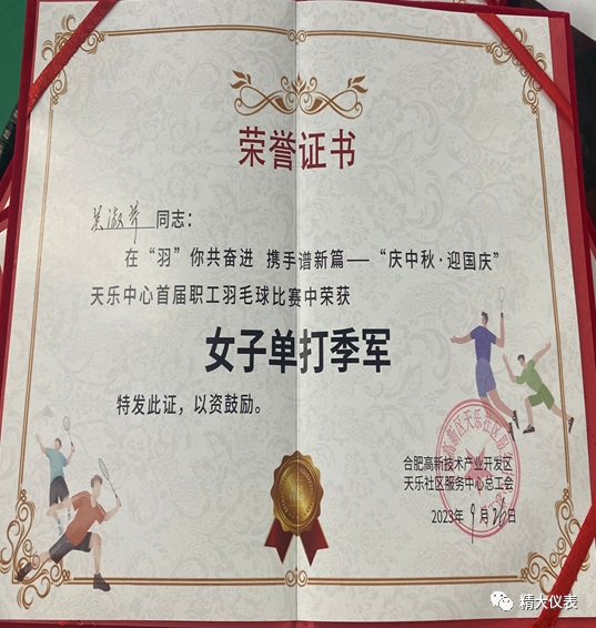 9月26日,我公司職工吳淑芹代表合肥精大儀表股份有限公司參加此項比賽,在她不斷的努力和拼搏下獲得了女子單打季軍,為亞運(yùn)會以及即將到來的雙節(jié)獻(xiàn)禮!