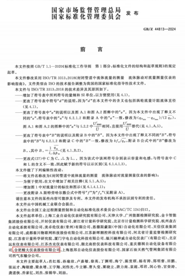 GB/Z 44813-2024發(fā)布,合肥精大儀表助力精準(zhǔn)流量測量新時(shí)代