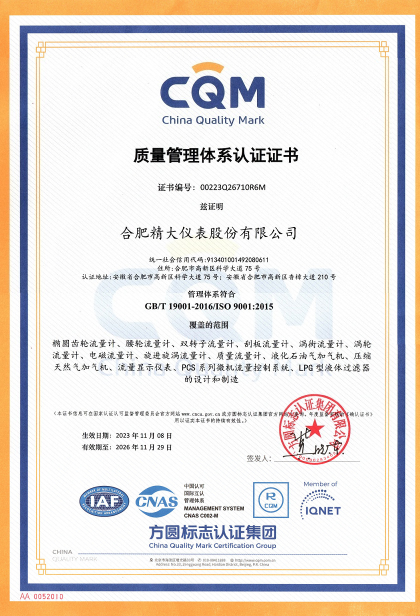 質(zhì)量管理體系認(rèn)證證書(shū)