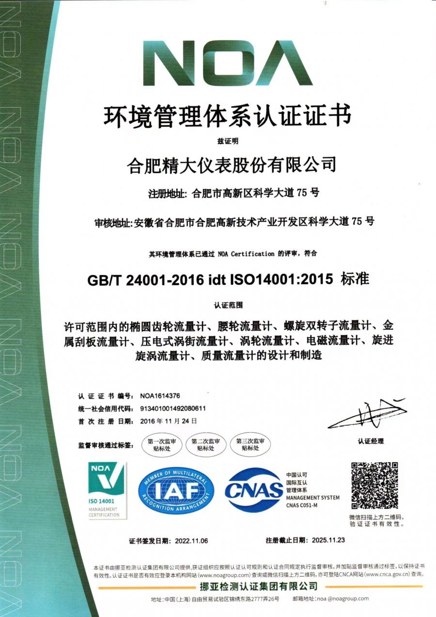 環(huán)境管理體系認(rèn)證證書(shū)