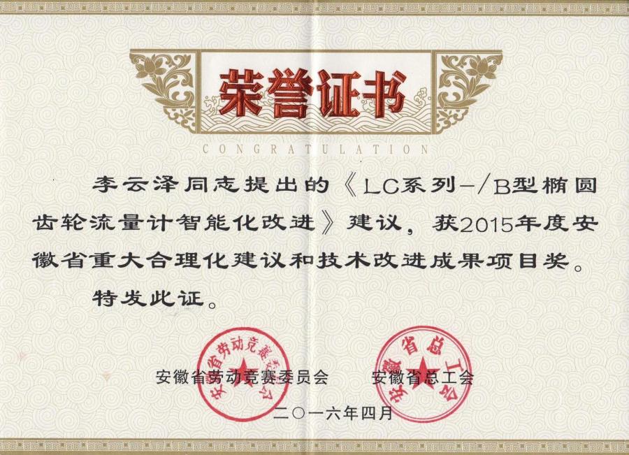 重大合理化建議項目和技術(shù)改進(jìn)成果項目獎(LC-B型)